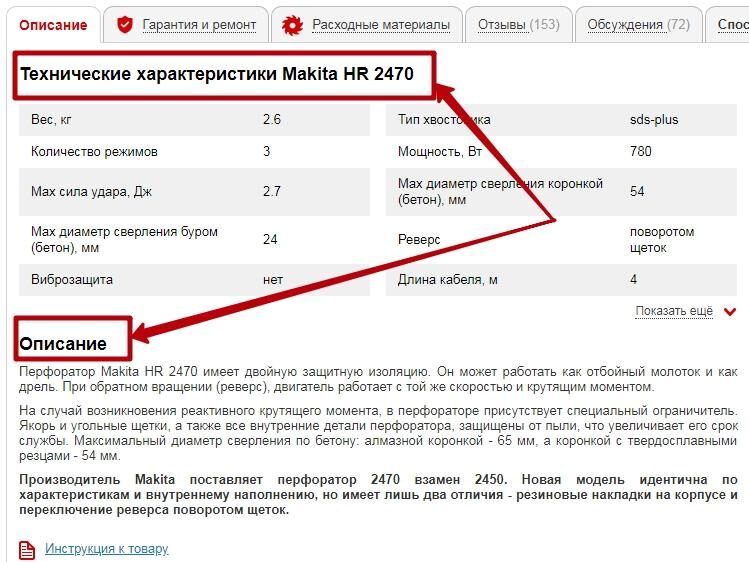 Характеристики и описание товара — не одно и то же