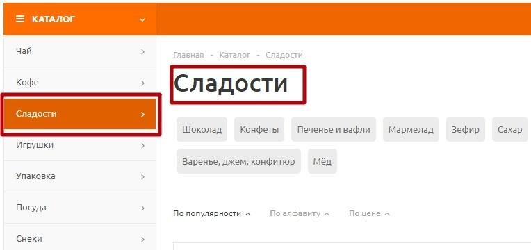 Этот чисто технический момент упрощает навигацию по каталогу. Активный пункт меню выделяется жирным шрифтом или за счет фона. Так пользователь сразу видит, в каком разделе каталога находится.