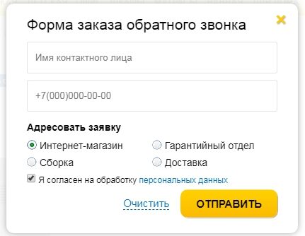 Пример формы обратного звонка