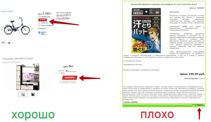 Если пользователь решит добавить товар в корзину, он не должен задумываться о том, как это сделать.