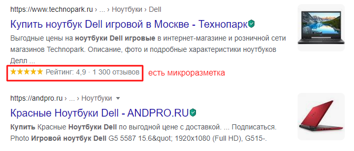 Сниппет с микроразметкой рейтинга выглядит убедительнее