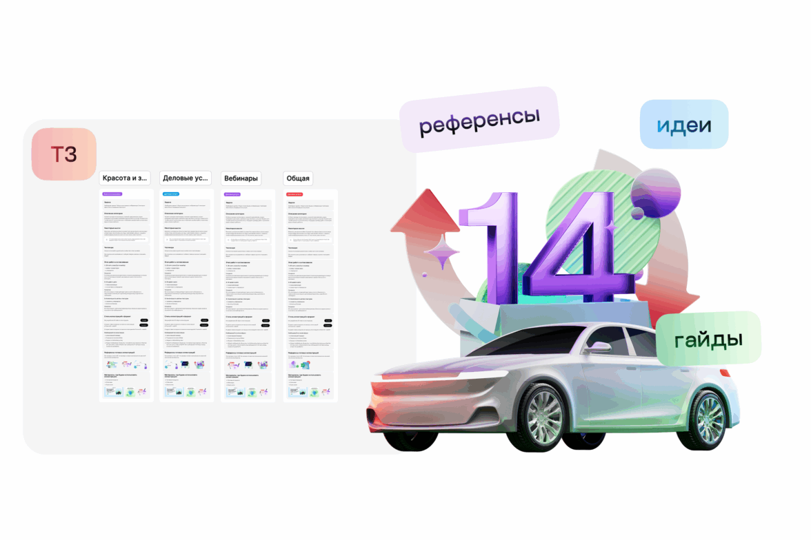 Задача была максимально подробно описана: в ТЗ были описания категорий, референсы, гайды по 3D-графике и даже идеи по визуалу. Но, помимо требований к формату и количеству файлов был и челендж — не использовать в графике руки, головы и другие части тела. Для кого-то такие требования звучат как ограничения, но нам близок подход Авито, да и вызовы мы любим. Так что приступаем к работе.
