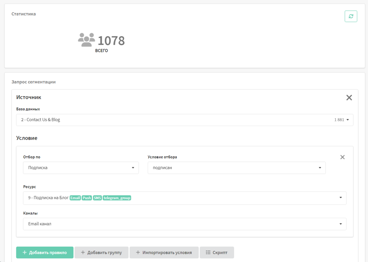 Пример сегментирования аудитории по геолокации в Altcraft Platform