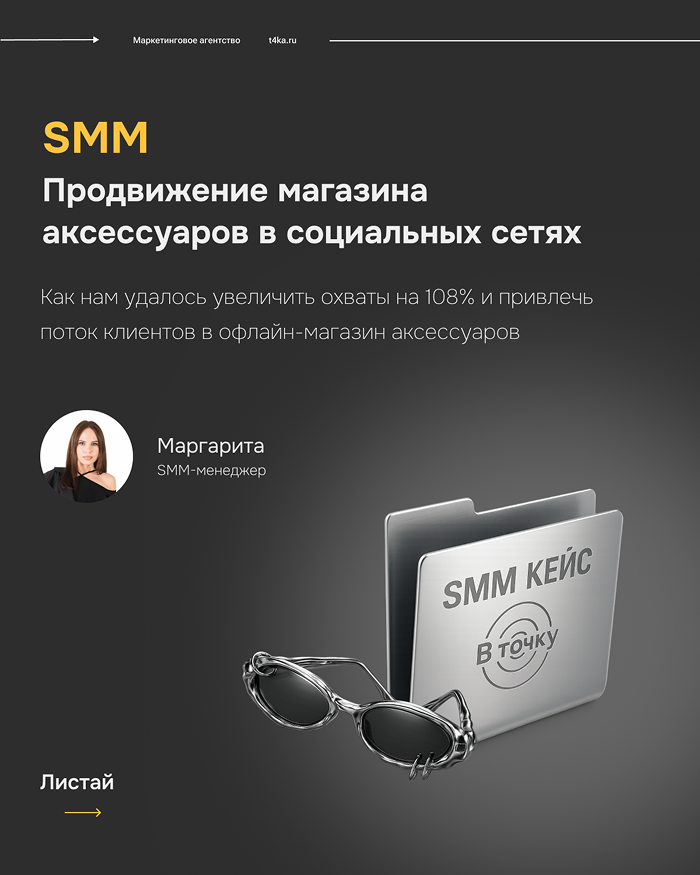 Приветствуем! Мы — SMM агентство «В точку». В этом кейсе рассказываем, как нам удалось увеличить охваты на 108% и привлечь поток клиентов в офлайн-магазин аксессуаров.