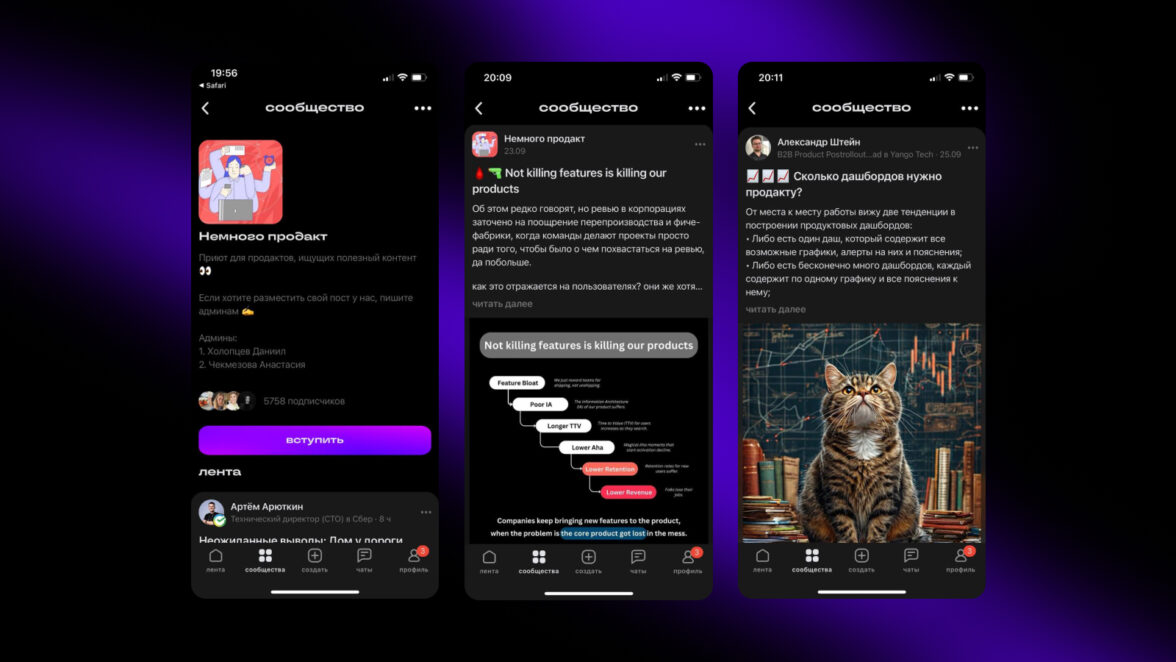 Канал для тех, кто ищет полезный контент или сам его создает. В нем собралось сообщество продактов из разных компаний, которые делятся своим опытом и советами друг с другом. Будет полезно для тех, кто не хочет вести свой блог на постоянной основе, но имеет в запасе несколько тем для обсуждения.