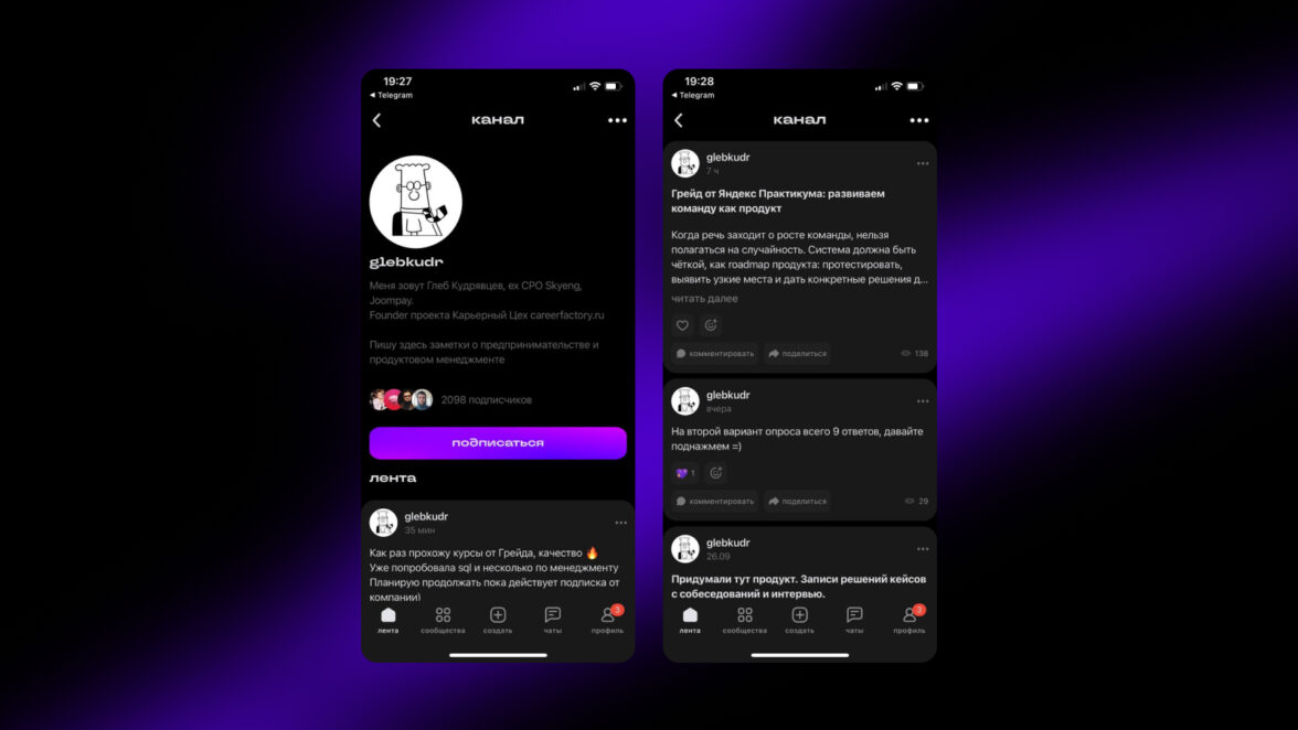 Канал Глеба Кудрявцева — фаундера проекта «Карьерный цех». Просто рассказывает о наболевшем в предпринимательстве и продуктовом менеджменте. Будет интересно тем, кто хочет узнать о личном опыте профессионала.