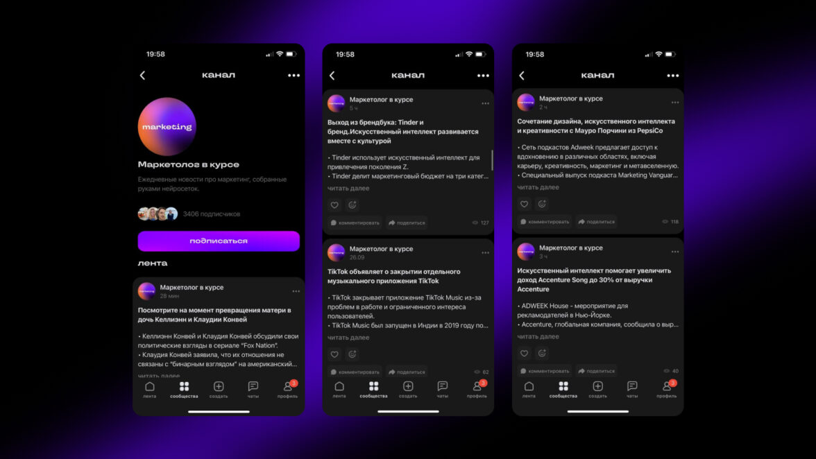 Новые инструменты YouTube, AR-очки от Snapchat, креативный вебинар от TikTok — только малая часть того, что есть в канале. Контент подбирается искусственным интеллектом, а в Сетке появляется благодаря боту. Отличная возможность оценить работу нейросетей.
