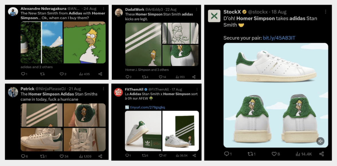 Летом 2023 года компания выпустила новый дизайн кроссовок Adidas Stan Smiths с Гомером Симпсоном. Для оформления использовали знаменитый мем, где персонаж пятится в кусты.