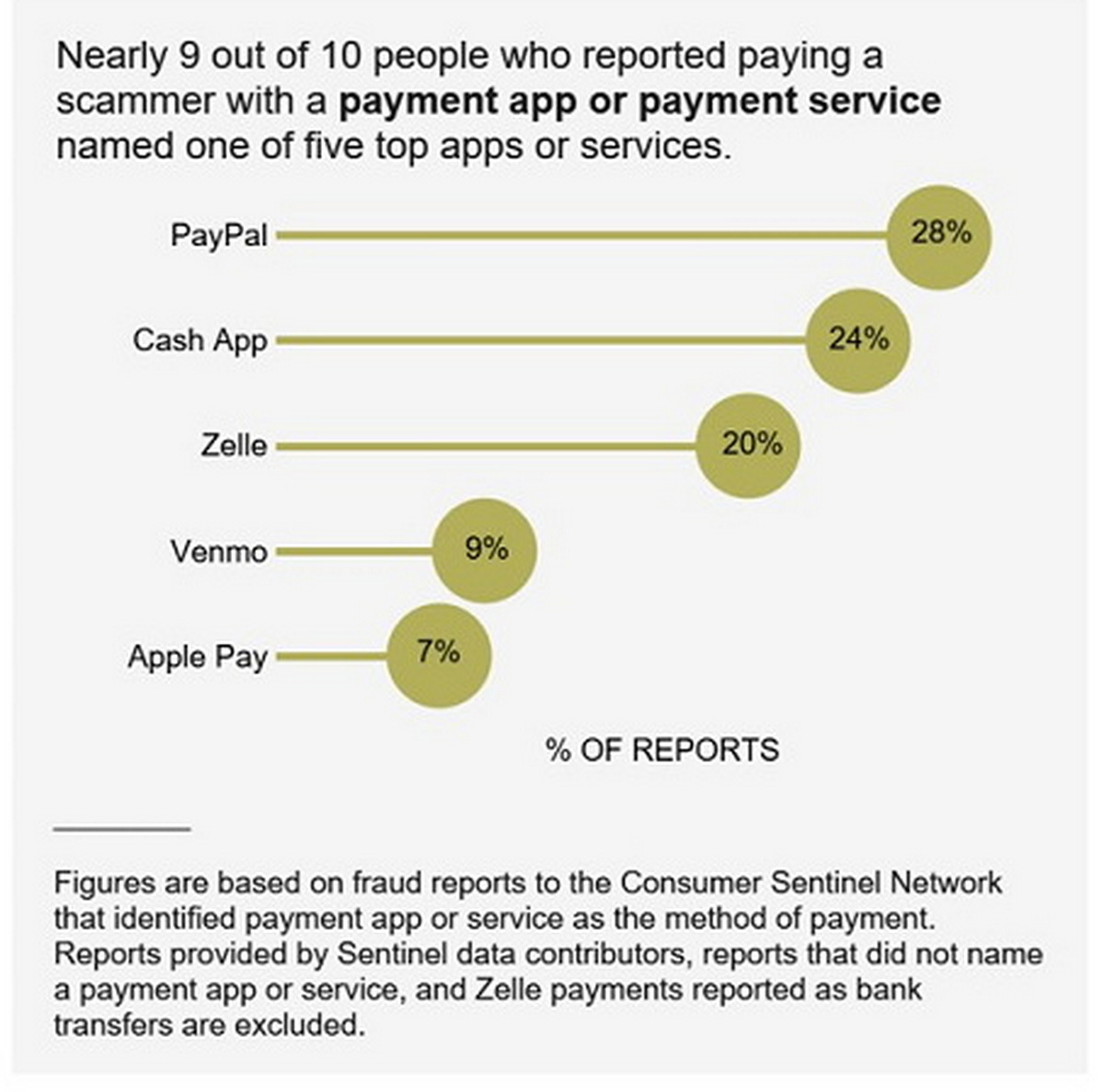 Чаще всего жертвы отправляют преступникам деньги с кредитных и дебетовых карт. За ними следуют платежные сервисы, такие как PayPal, Cash App и Zello.