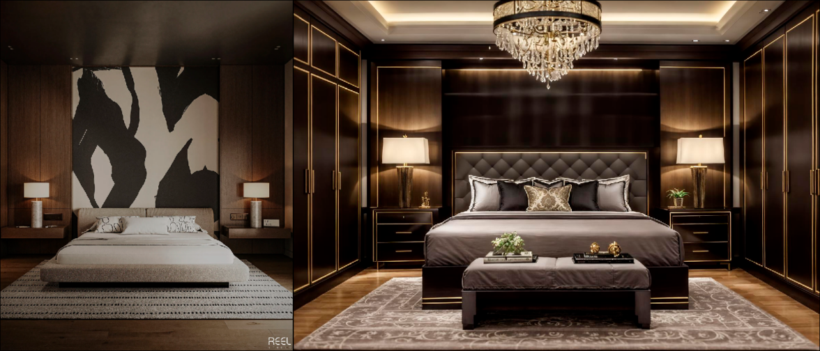 Слева — рендер от дизайнеров с Behance. Справа — генерация Interior AI