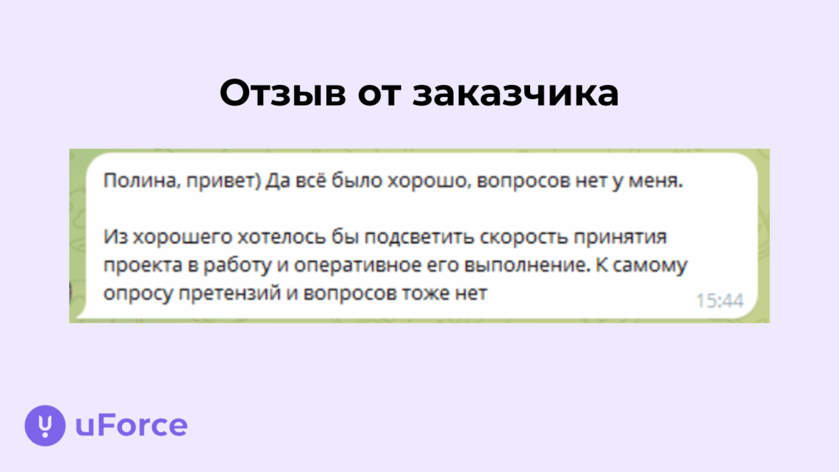 Заказчик остался доволен проделанной работой и отметил оперативность команды Market Research.