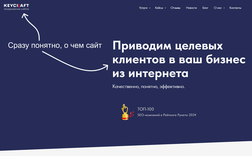 Помните: если посетитель не понял, чем вы можете быть ему полезны, он не сделает ни одного шага дальше. Даже если сайт красивый и быстрый.