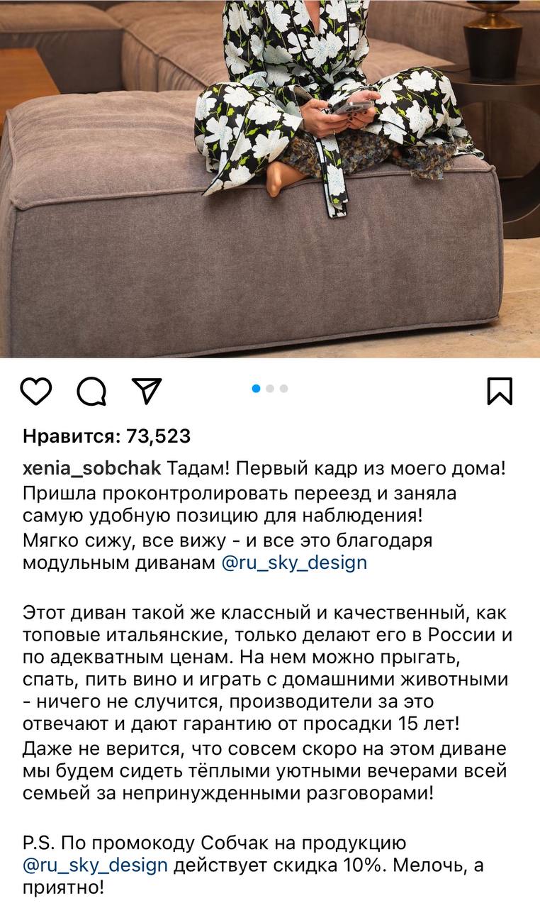 Посмотрите на отзыв о мебельном бренде в блоге Ксении Собчак: