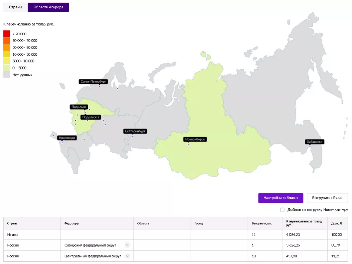 Коэффициент территориального распределения влияет на размер ваших затрат на логистику. Если вы отгружаете товар только на склад в Москве, ваши логистические расходы будут выше, так как заказы поступают из разных регионов. Грамотно распределяя товар по регионам, вы уменьшаете КТР и платите меньше за логистику.