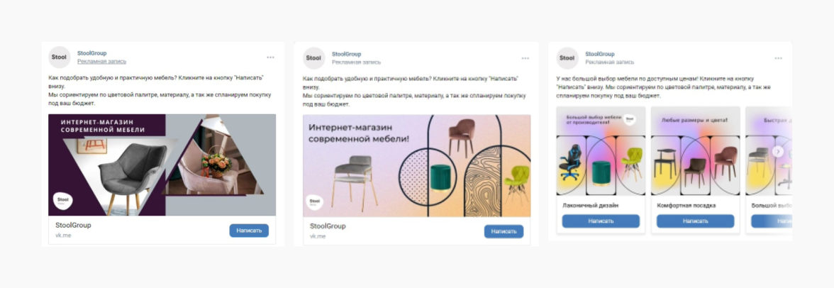 Первое, что мы сделали — подготовили рекламные объявления с дизайнерскими баннерами. Тестировали разные форматы.