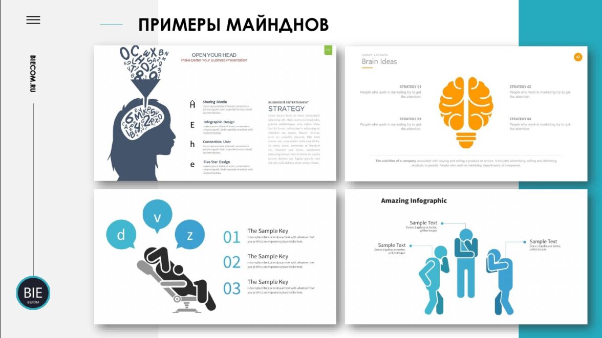 На изображении могут быть люди в задумчивой позе, голова и выноски с мыслями, идеями… Главное, что слайд с «майндами» послужит для аудитории призывом подумать и сконцентрировать внимание. Интерпретация может быть разной, покажем несколько примеров.