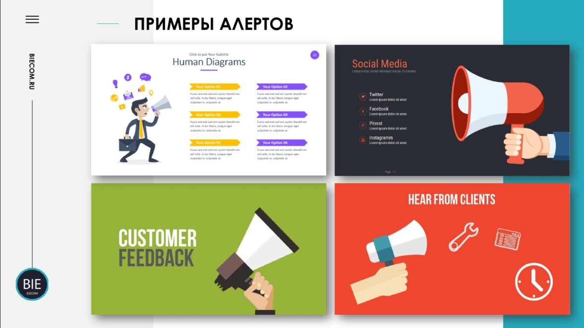 Один из самых эффективных способов быстро вернуть внимание уставшей аудитории. Чаще всего «алерты» содержат изображение рупора, мегафона или другого провокационного рисунка. Они будто всем своим видом кричат: «Внимание!».