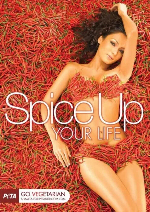 *Добавь перчинки в свою жизнь — стань вегетарианцем. Реклама компании Peta.