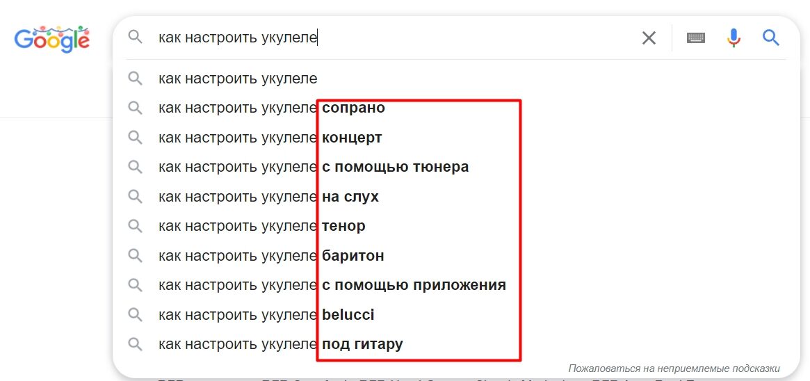 Используйте подсказки Google или Яндекс при вводе запроса, чтобы получить варианты популярных запросом с длинным хвостом.