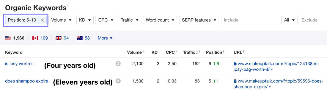 Я не говорю о том, что сайты из верхушки выдачи находятся там незаслуженно, но в топе часто задерживаются устаревшие или некачественные материалы. Вы можете найти их, посмотреть ключи, по которым они ранжируются, и сделать с этими ключами новую релевантную статью.