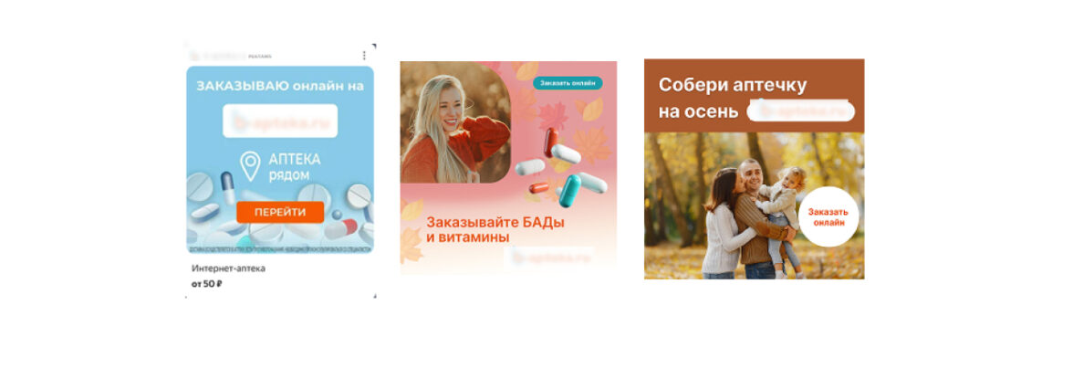 Креативы и таргетинги на разных площадках адаптировали под сегменты покупателей согласно стратегии: к примеру, для родителей предложили оффер про подготовку к сезонным заболеваниям и обновлению аптечки. Для хроников — напоминание о том, что пора заказывать витамины для иммунитета. Добавили также офферы по гео («Аптека рядом») и офферы с привлекательными ценовыми предложениями на отдельные позиции лекарств:
