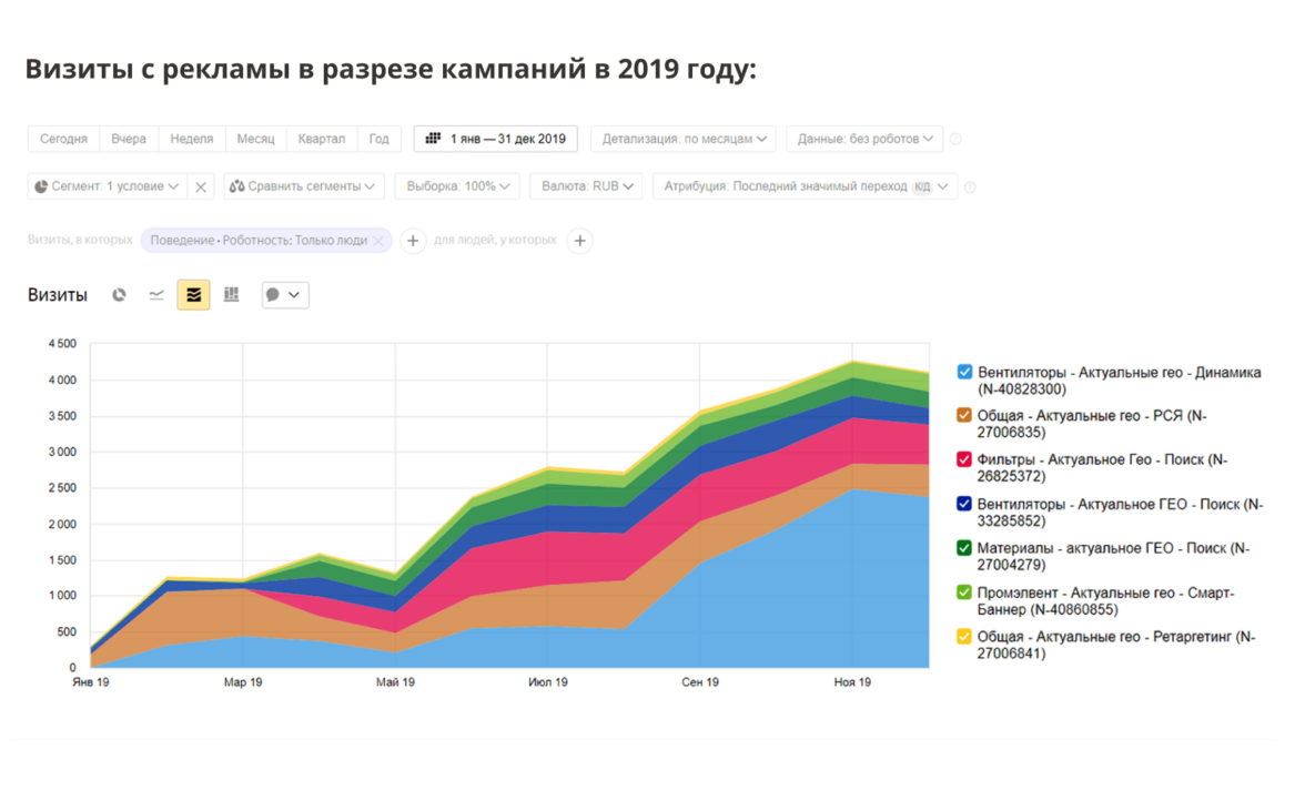Сначала запустили кампании на все товары. В 2017 кампании нужно было создавать и вести вручную. После тестирования поняли, что у нас нет ресурсов «минусить» огромное количество нецелевых запросов. Например под запрос «вентиляционные фильтры» попадали и автомобильные.