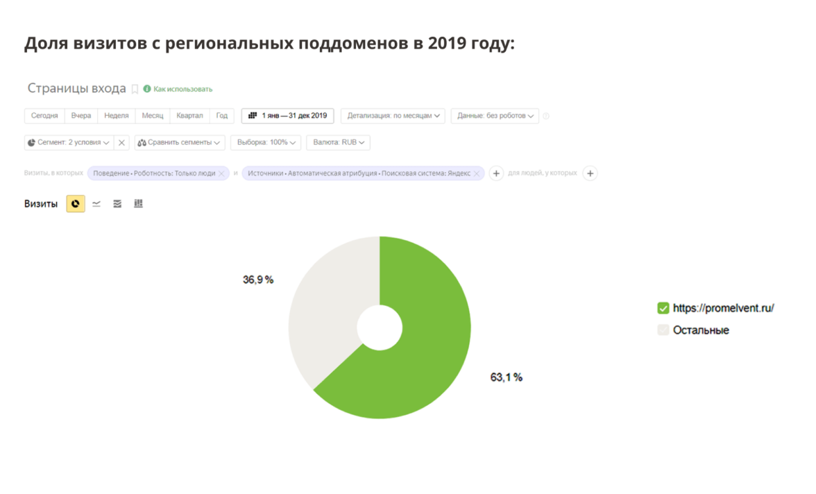 Начали привлекать трафик из регионов, у сайта появилась мультидоменность. За счет регионального трафика в SEO мы выросли еще на 26%: