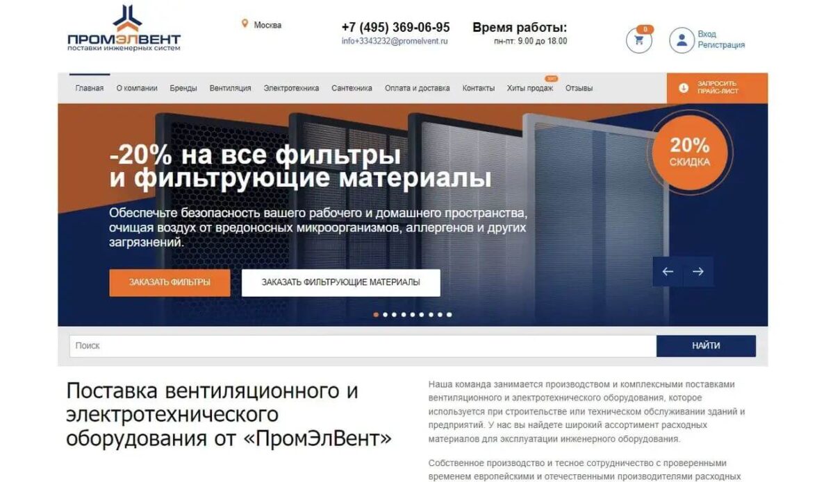 В сентябре 2016 года к нам в WebCanape обратился начинающий предприниматель. Он решил основать свою компанию по поставке вентиляционного и электротехнического оборудования «ПромЭлВент».