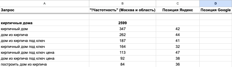 текст — ключевые слова с самым высоким спросом на основе анализа конкурентов;