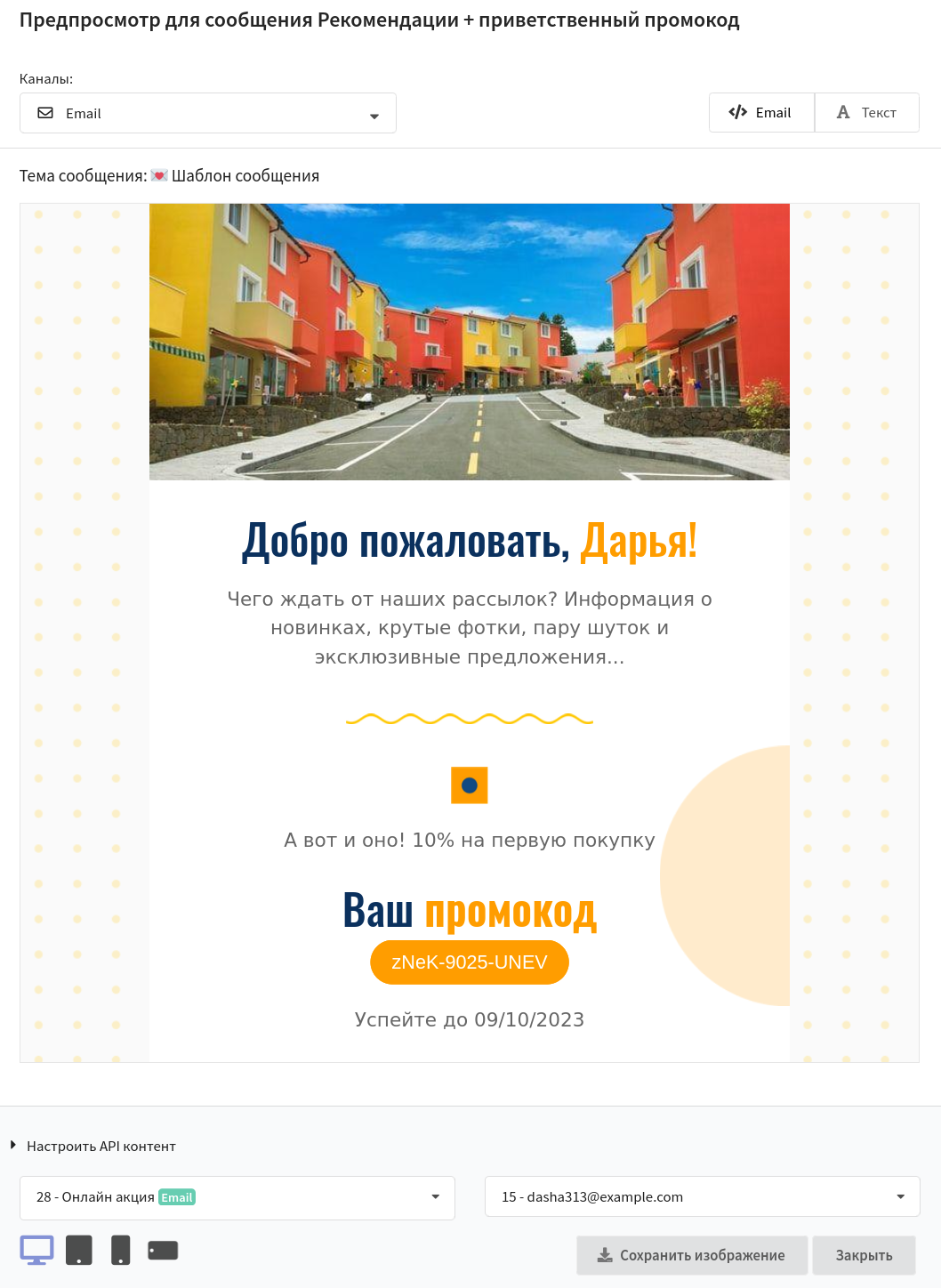 Чтобы не допускать отправки сообщения с непонятными символами и «невидимым» текстом, в Altcraft Platfom есть функция предпросмотра email. Перед рассылкой писем вы увидите, как они отображаются в мобильной и десктопной версии. Кроме того, вы можете отправить тестовые письма себе или коллегам. Так вы убедитесь, что шаблон корректно отображается во всех почтовых клиентах. Не стоит забывать и о тёмное теме на устройствах пользователей.