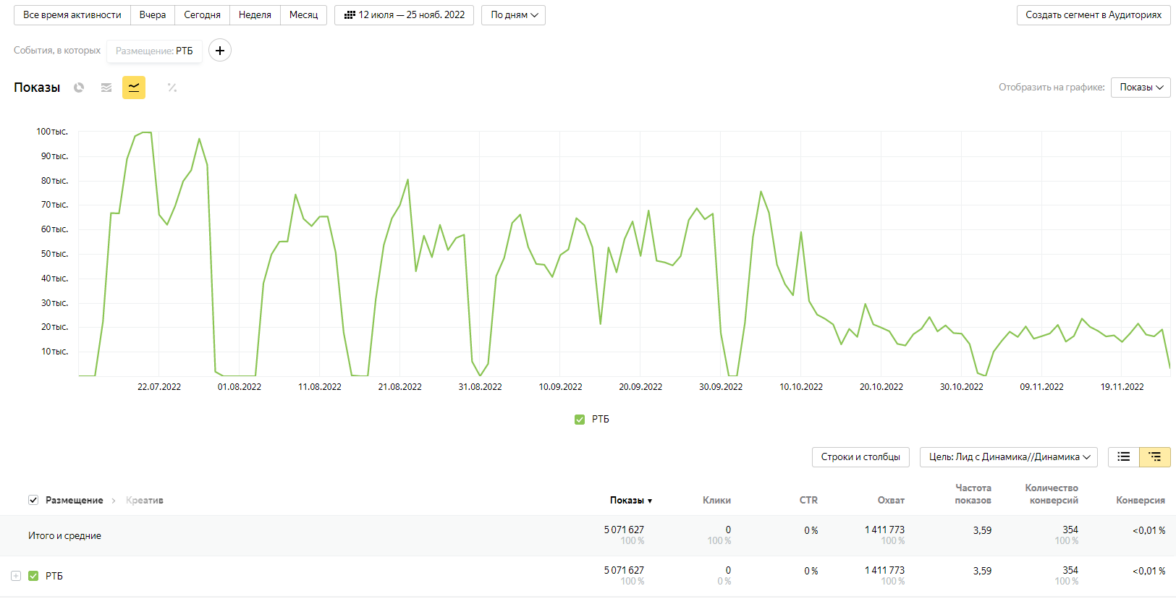 За время рекламной кампании с 12.07 по 25.11 мы получили: