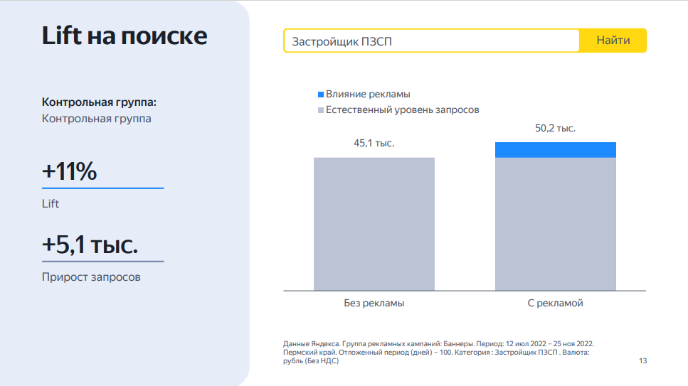 Рост брендового трафика на 11% у пользователей, видевших медийку.