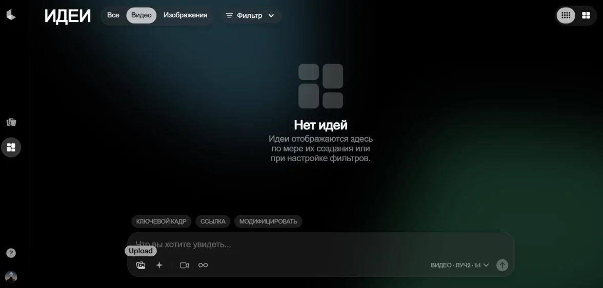 Интерфейс Luma AI Dream Machine, переведенный на русский