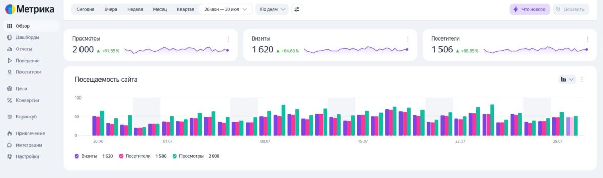 Яндекс Метрика — это инструмент, предназначенный для анализа аудитории сайта и поведенческих показателей. С его помощью можно отслеживать трафик, выявлять проблемные зоны интерфейса и улучшать пользовательский опыт. Сервис предоставляет детализированные отчеты о посещаемости, продолжительности сеансов, количестве посещенных за сеанс страниц и других параметрах. Весь функционал доступен бесплатно.