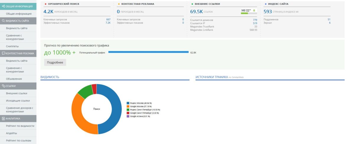 Мегаиндекс предоставляет детальные отчеты о ссылочных профилях конкурентов, чтобы выявлять их сильные и слабые стороны. Инструмент также позволяет анализировать ключевые слова, что помогает в разработке более эффективных SEO-стратегий.