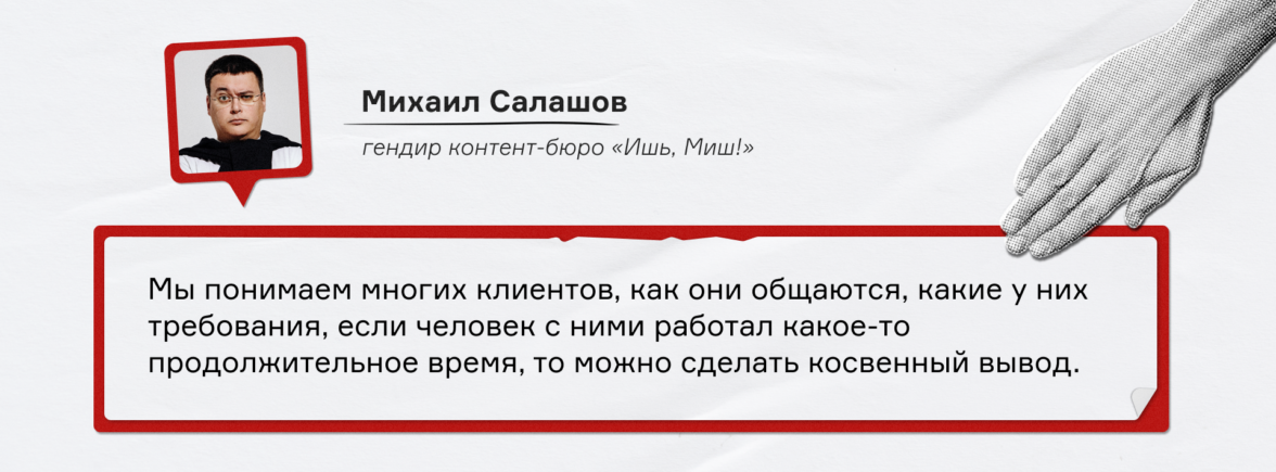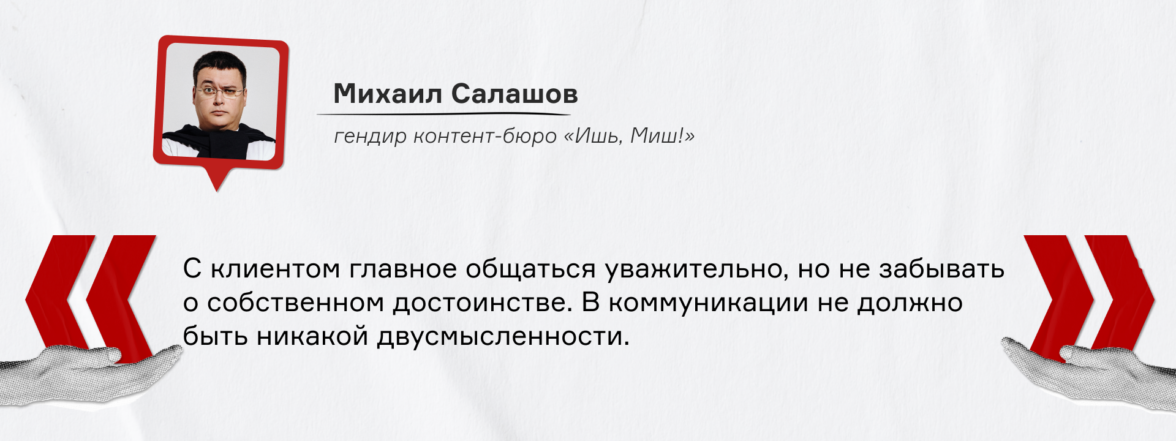 Подробнее о нашем подходе к работе читайте в соцсетях «Ишь, Миш!» в Телеграме и Дзене.