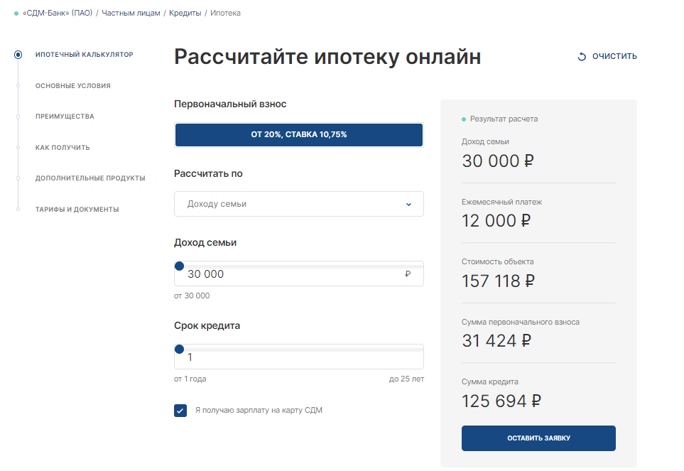 Когда пользователи выбрали подходящую программу, остается рассчитать ежемесячный платеж и оформить заявку.