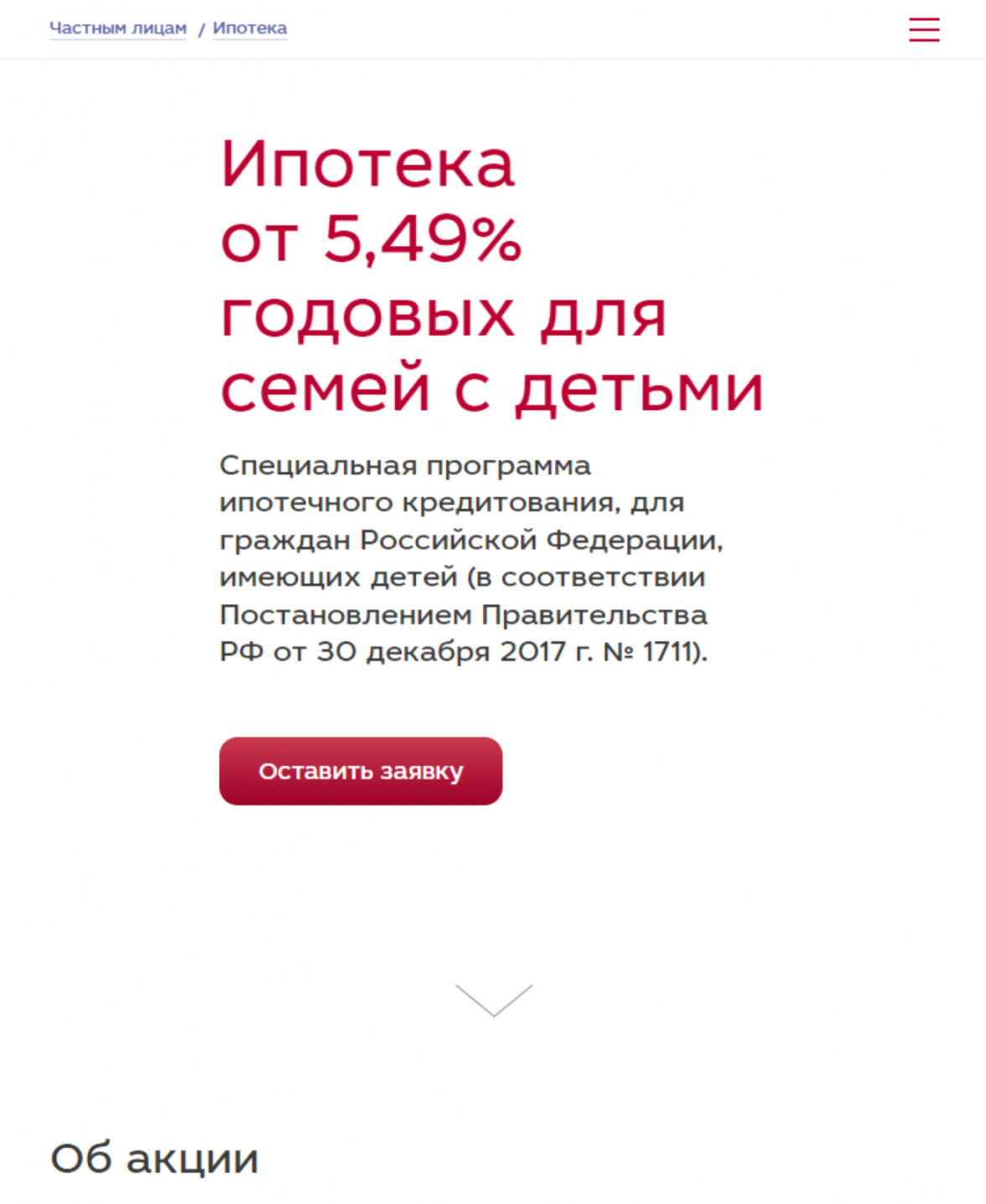 На сайтах всех банков не составляет труда найти раздел с ипотеками. Как правило ссылка на раздел всегда есть где-то на главной, там, где пользователь ожидает ее найти. И называется тоже чаще всего ожидаемо — «Ипотека».