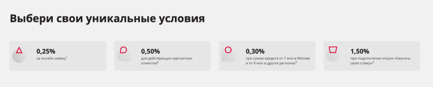 UX-текст не может быть оторван от дизайна. Иначе пользователи будут разгадывать ребусы вместо быстрого просмотра условий. Например, в Росбанке пользователи могут снизить ставку, если выполнят определенные условия. Но иконка рядом с пунктом будто показывает рост ставки, а никаких уточнений нет. В итоге, без контекста непонятно, увеличится ставка на 0,25% или снизится.