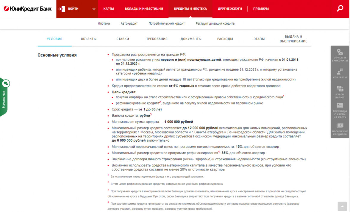 Пример похуже. В описаниях программ ЮниКредит банка нет акцентов на ключевые преимущества — все они просто выделены жирным шрифтом в сплошном тексте.