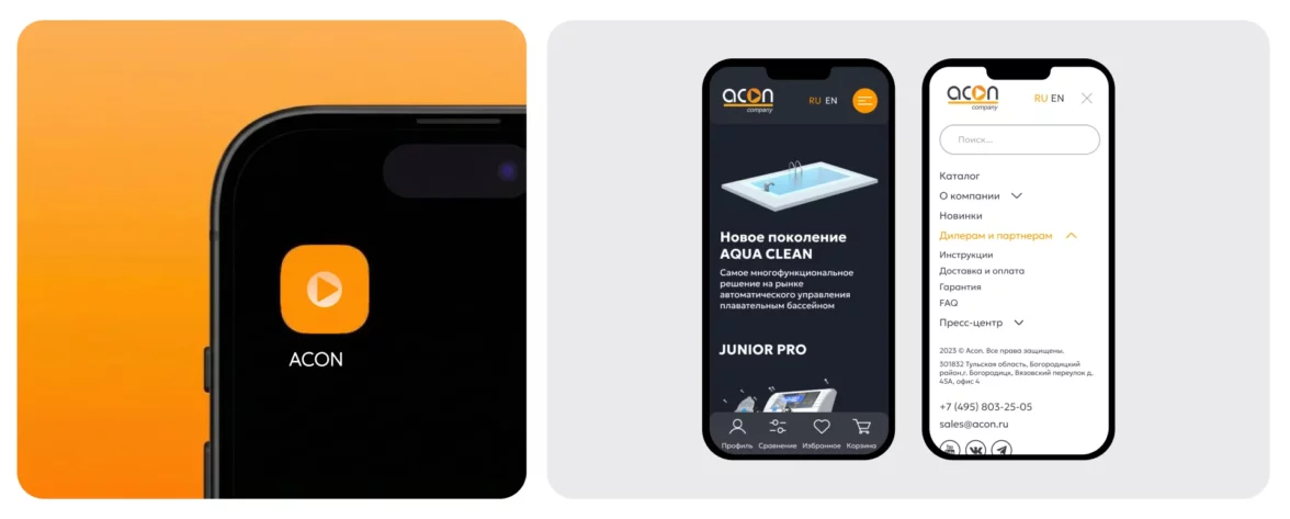 У нас вышел сайт, который одновременно решает задачи и клиентов, и дилеров. Первым он показывает мощь ACON через эффектную 3D-анимацию. Вторым — даёт удобный личный кабинет для работы. Одна платформа, два сильных впечатления: доверие бренду и комфорт в работе.