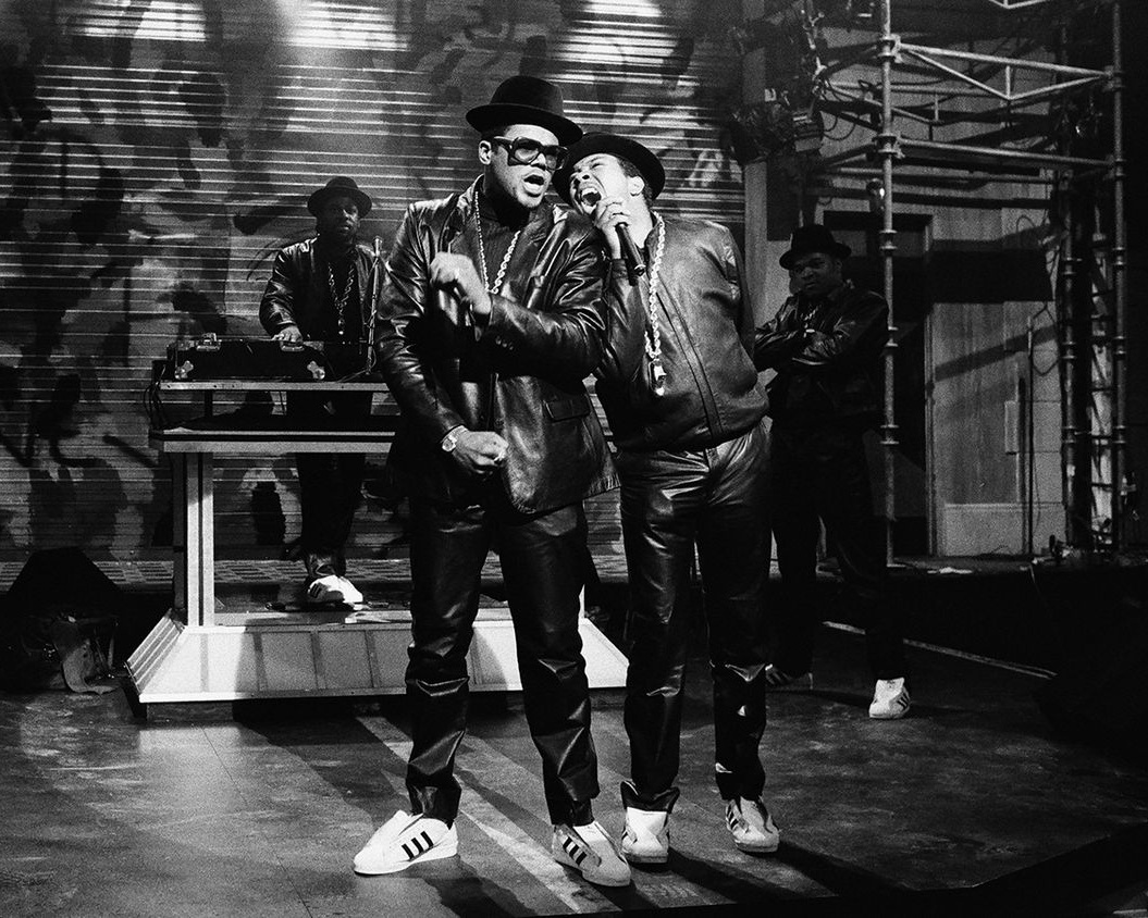 Одежда и обувь Adidas очень популярна среди чернокожих музыкантов и их поклонников. Но проникновение бренда в молодежную культуру Америки и приобретение им культового статуса началось без ведома компании. В 1983 году на музыкальной сцене появилась группа «Run-D.M.C.». Рэп-исполнители стали известны своим нежеланием подстраиваться под поп-стандарты того времени. В частности, участники команды решили, что не будут одевать на выступления специальные концертные костюмы, а будут появляться на концертах в той же одежде, что носят в обычной время. Трио было замечено в том, что они надевали кроссовки Adidas Superstar так, как обуваются в тюрьме — без шнурков и с вывернутыми наружу языками. В 1986 году группа выпустила трек «My Adidas». После этого немецкая компания, осознав какую неоценимую услугу ей оказали музыканты, подписала контракт с группой стоимостью $1 млн.