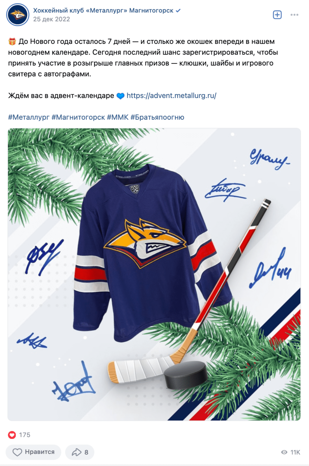 Адвент-календарь на сайте ХК «Металлург» увеличил выручку и базу подписчиков