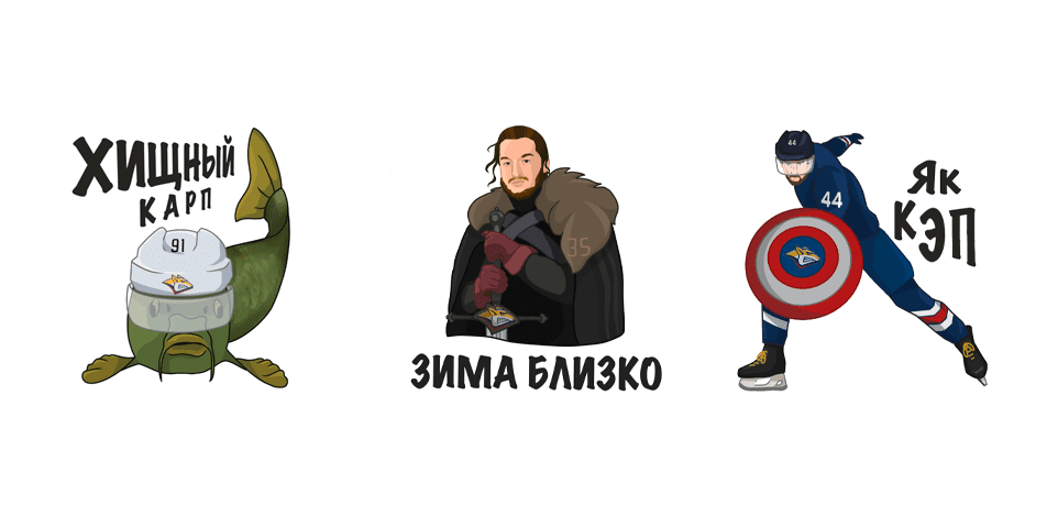 эксклюзивные стикеры для телеграма, созданные на основе узнаваемых крылатых фраз, связанных с хоккеистами и главным тренером;