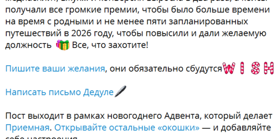 Адвент-календарь — идеальный формат для долгосрочного удержания внимания. Он создает предвкушение и формирует привычку ежедневно читать канал.