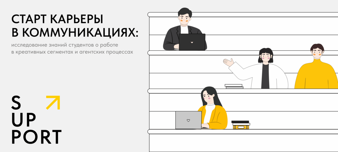 Digital-агентство SUPPORT провело исследование среди студентов из 30 вузов России, чтобы понять, как они воспринимают работу в креативных агентствах и с какими трудностями сталкиваются в начале профессионального пути. В опросе приняли участие более 300 студентов направлений «Реклама», «PR», «Медиакоммуникации» и «Маркетинг».