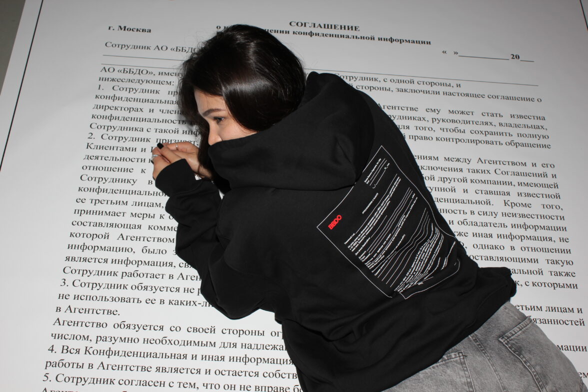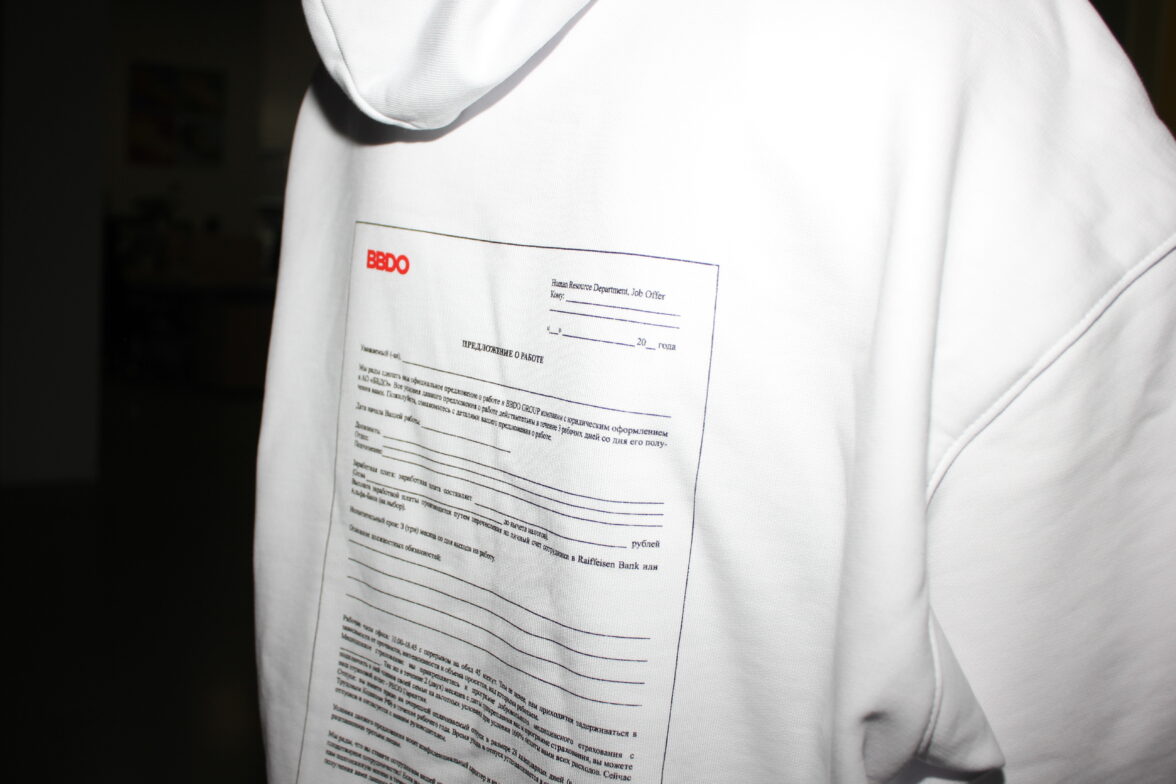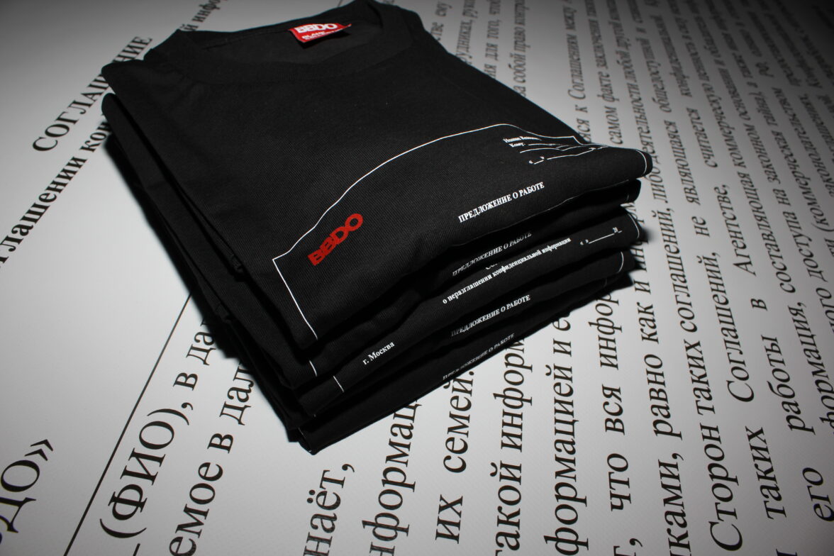 Каждый бланк получил свою идеальную ироничную пару: NDA — на снуде, чтобы не говорить лишнего ртом; заявление на отпуск — на чехле для чемодана; приказ о командировке — на дождевике. А отшить всё это помогли нам ребята из Underdog, чей мерч мы тоже очень любим.
