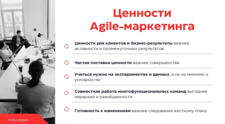 В agile-маркетинге даже есть свой Манифест, который выступает некой системой координат для всех маркетинговых команд.