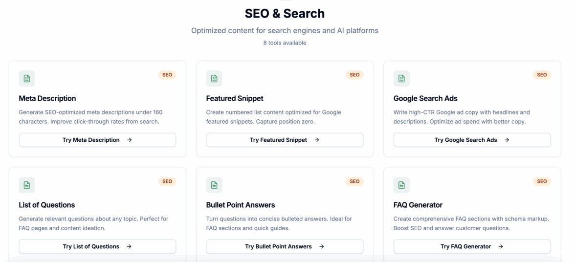 Умеет улучшать тексты, очеловечивать нейросетевой контент, улучшать тексты для поисковых систем и AEO-выдачи.