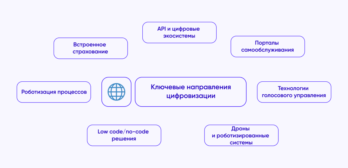 Сегодня цифровизация в сфере страхования развивается сразу по 7 направлениям: